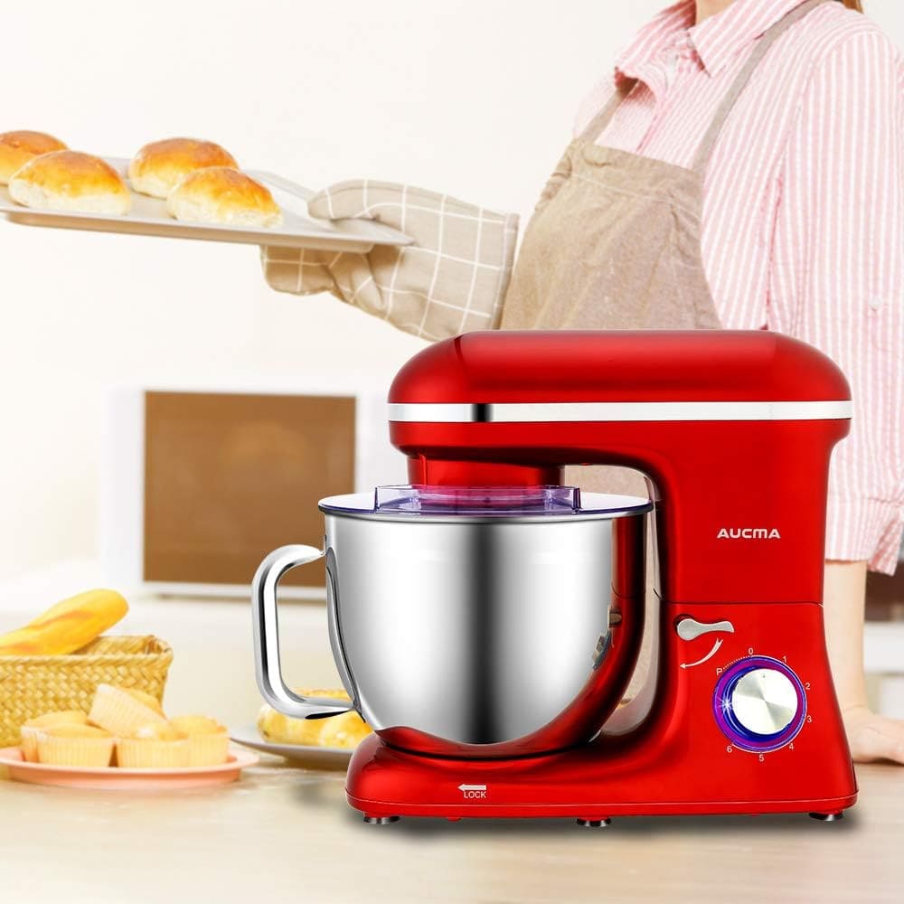 Aucma Stand Mixer,6.2L, 6 Speed Electric Kitchen Mixer with Dough Hook, Wire Whip & Beater 1400W (6.2L, Red)
