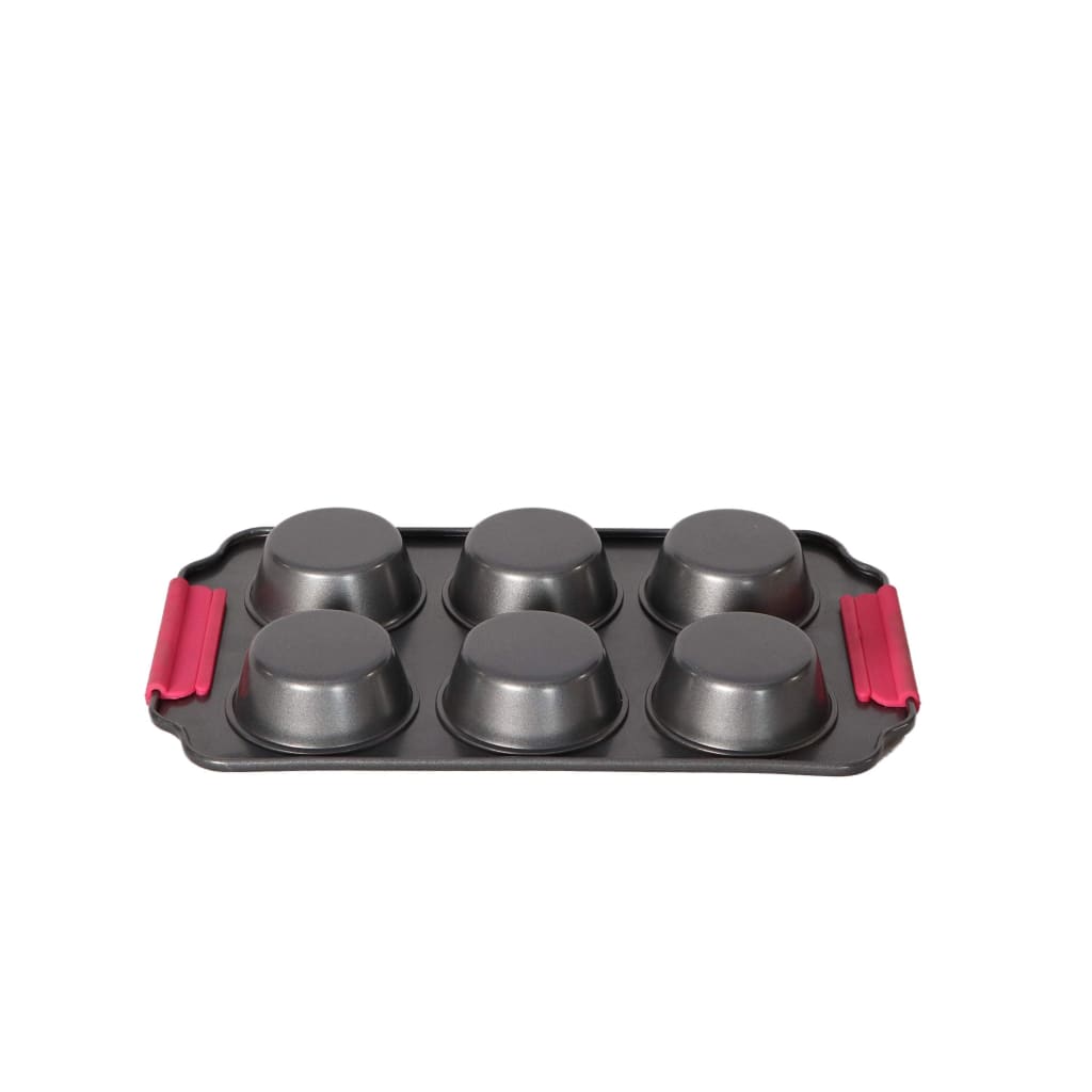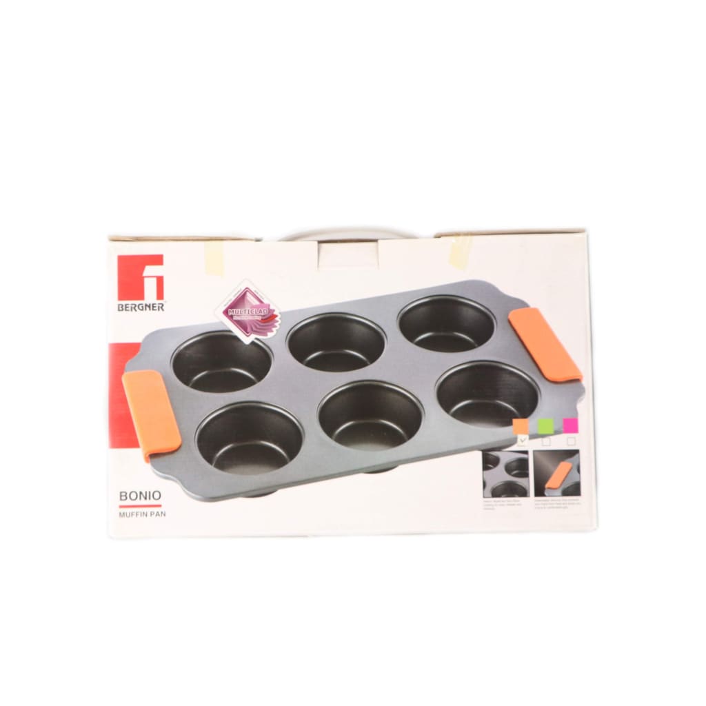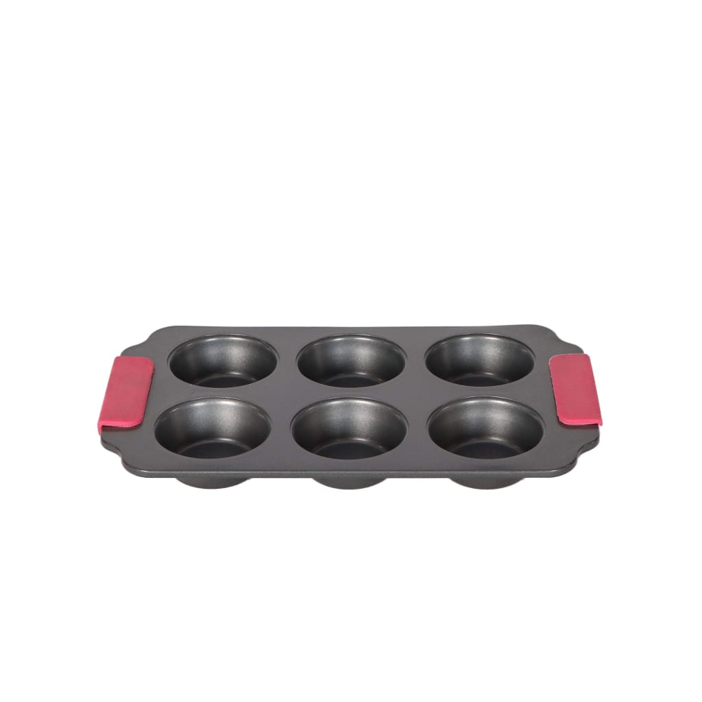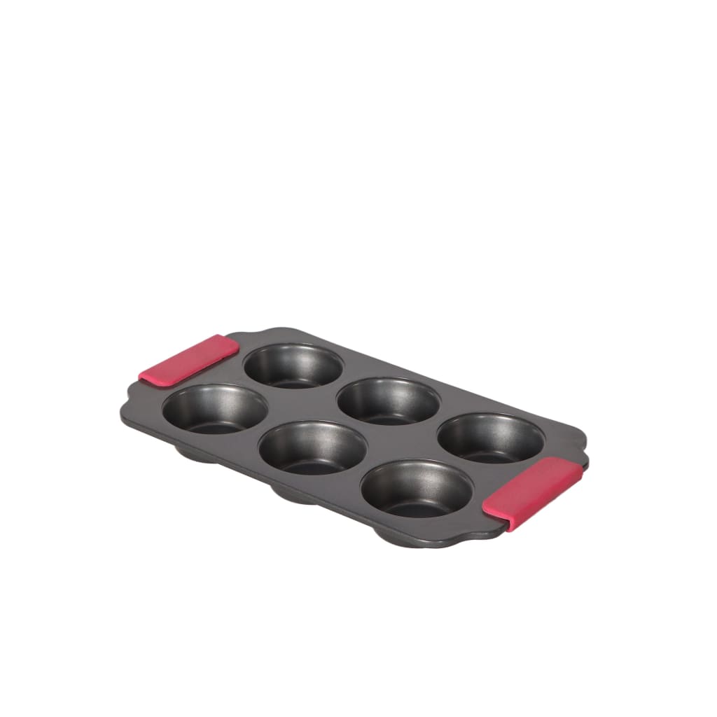 Bergner 6-Cup Oven Muffin & Cupcake Pan Steel Muffin, Gray with Grips