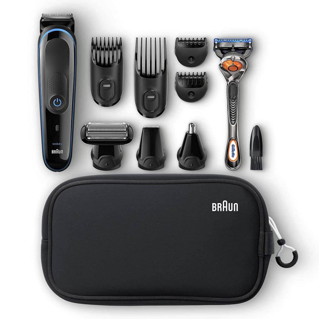 Braun All-in-one trimmer 3 for Face, Hair, and Body, Black/Blue 9-in-1 styling kit with Gillette Fusion5 ProGlide razor