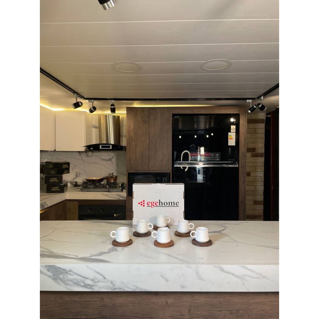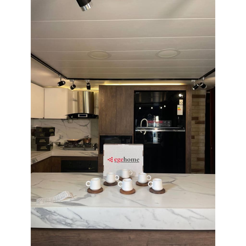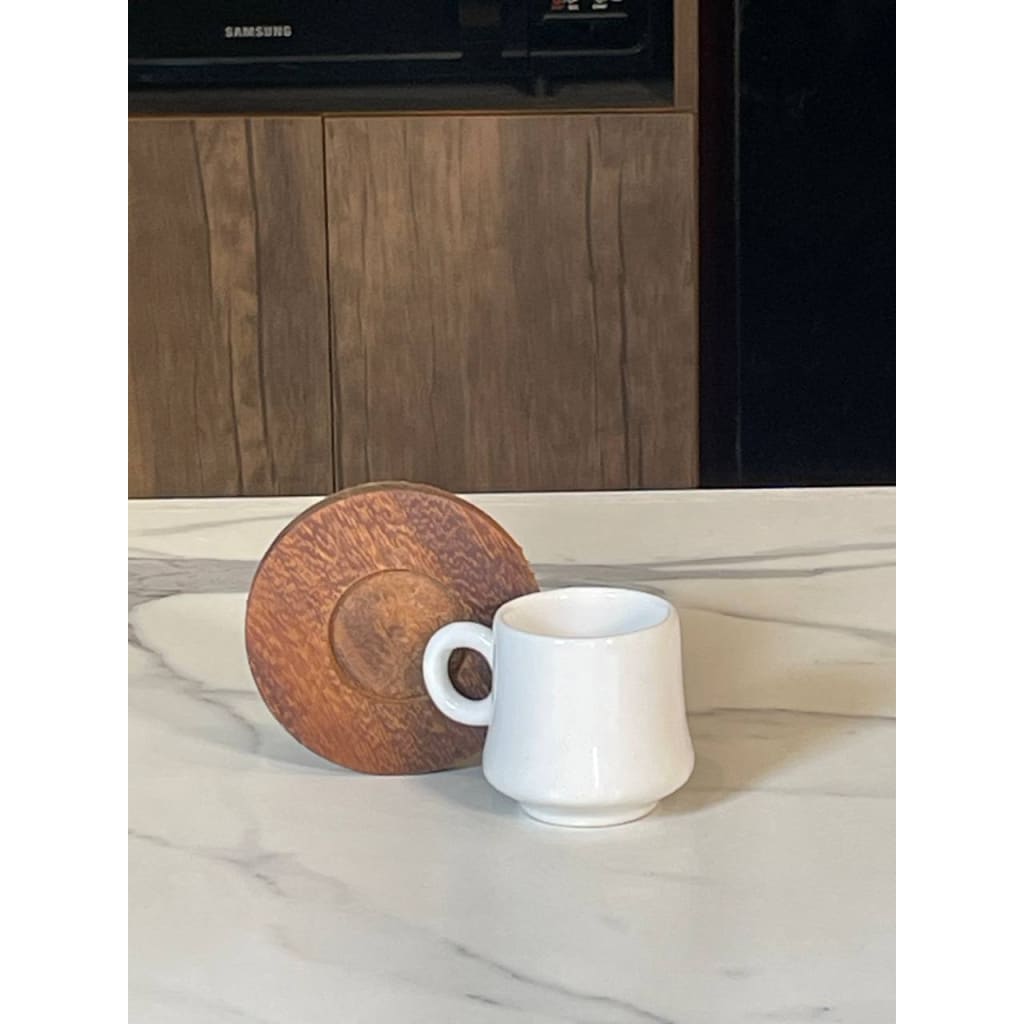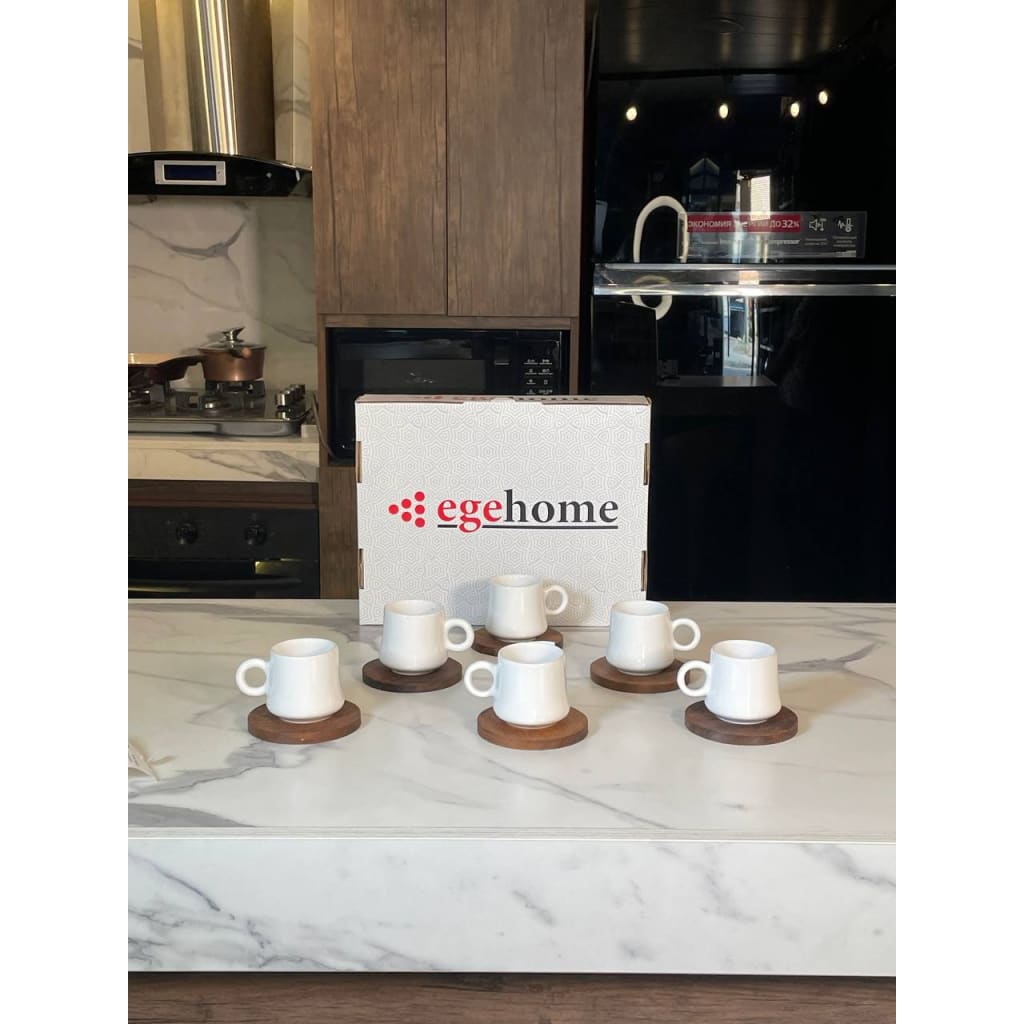 Ceramic Egg Coffee Cups 12 Pcs Set - White + Wood Coasters