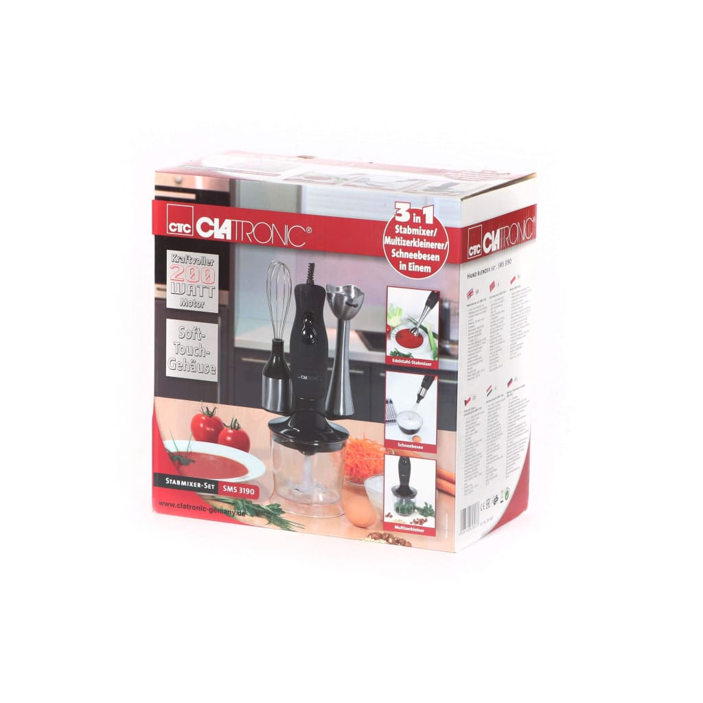 Clatronic SMS3190 Hand-held blender 200 W with blender attachment, Whisk attachment, with mixing jar Black