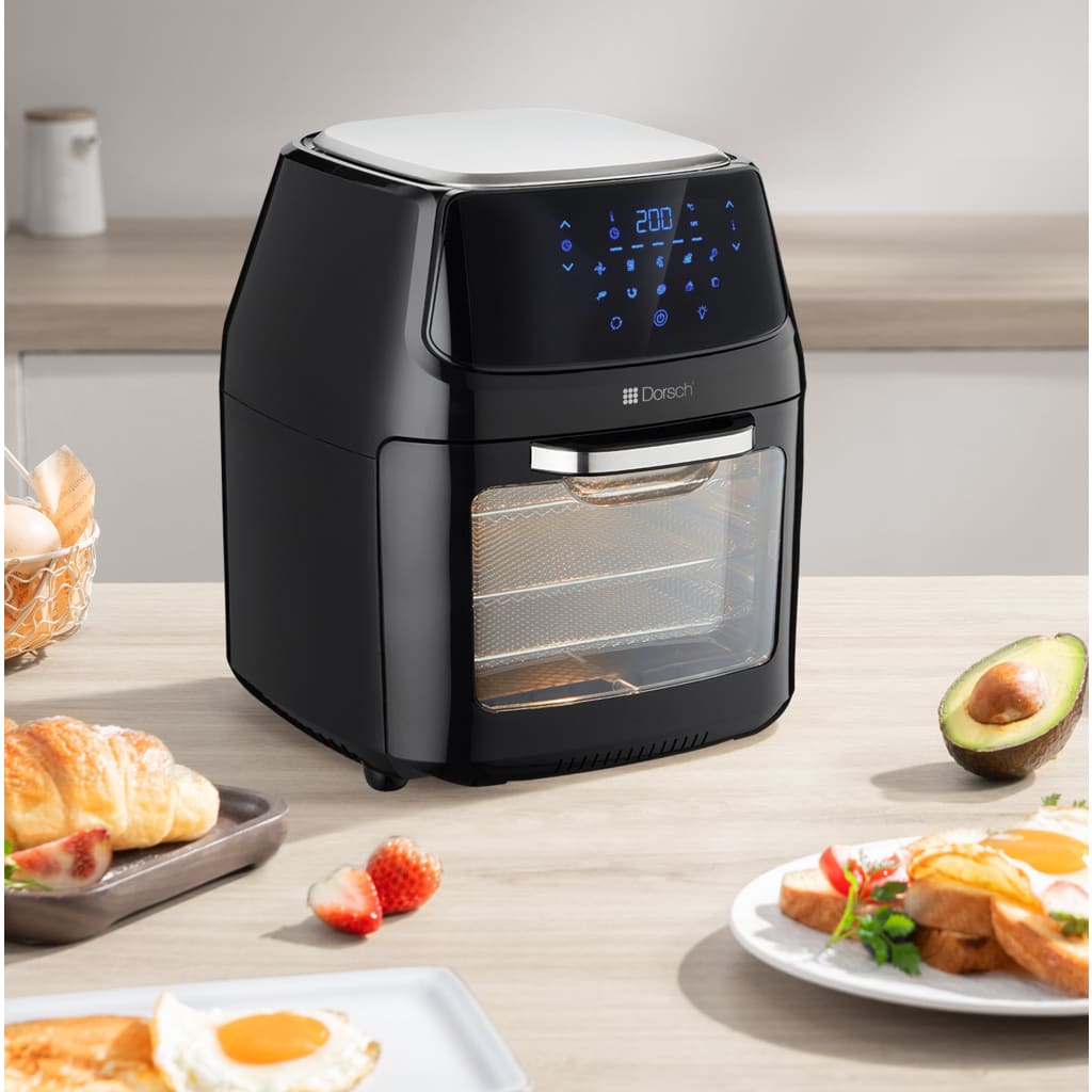 Need to cook for a hungry family or host a dinner party? No problem! The Dorsch Air Fryer AF-100 boasts an expansive 16-liter capacity that can accommodate large meals with ease. Prepare a whole chicken, a pizza, or multiple trays of snacks in one go, saving you time and effort in the kitchen. Say goodbye to overcrowded ovens and hello to convenience.