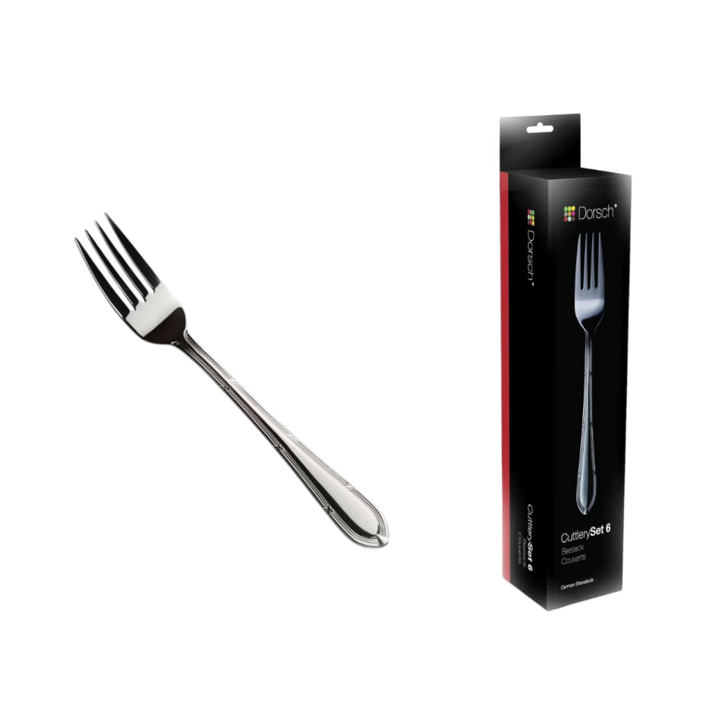 The Dorsch Classic Fork set of 6 pcs is a great choice for any meal. Made of stainless steel, the forks are highly durable and non-corrosive, making them perfect for long-term use. The smooth, ergonomic handles ensure easy and comfortable grip. Perfect for everyday use, they are ideal for any dining setting.