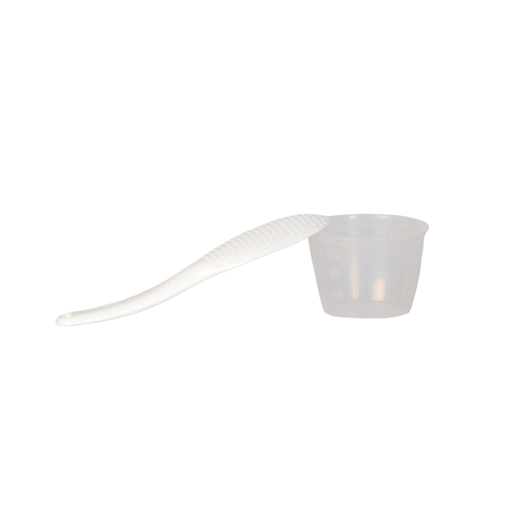 - Spoon and measuring cup included