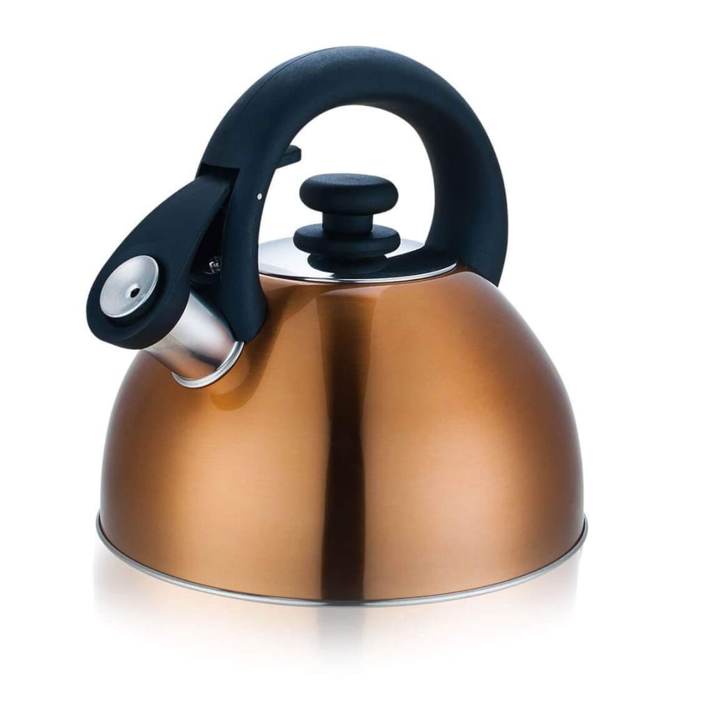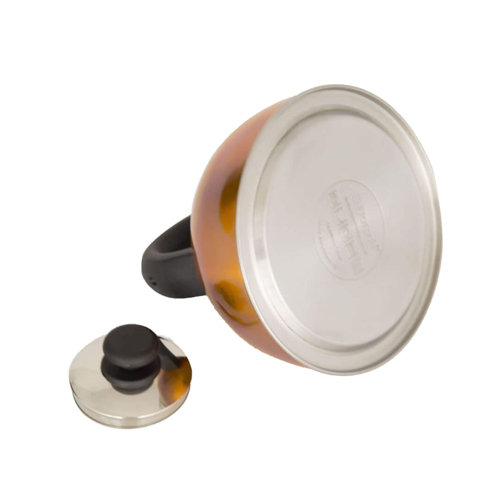 With Dorsch Whistling Kettle you can make your own tea time circle. This stovetop accent features a luxurious Golden color enameled exterior, a sleek contemporary-styled handle and a generous 2.5-L. capacity.