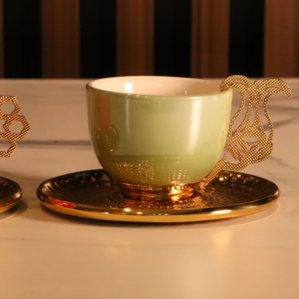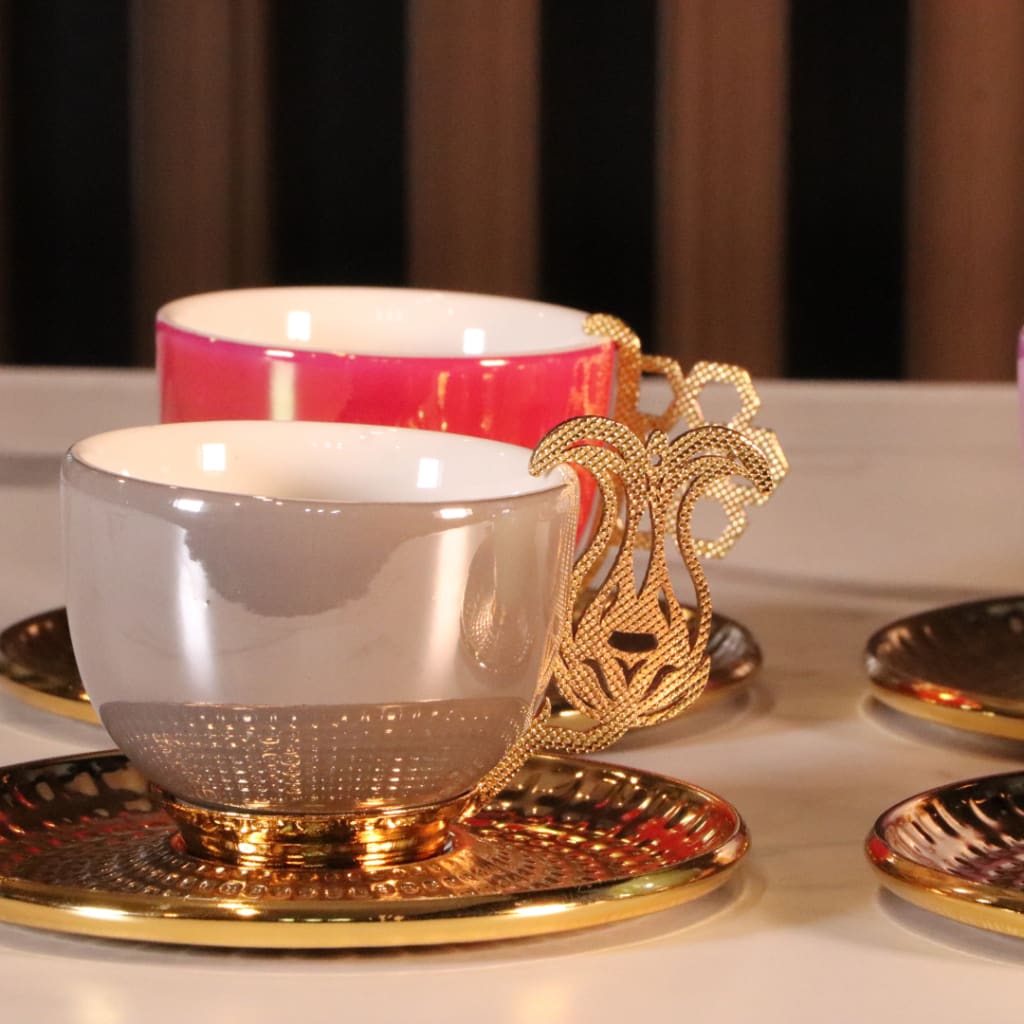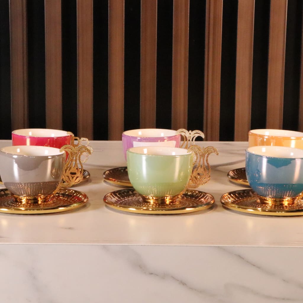 Luxury Colorful Arabic Gold Handle Coffee Set - 12 Pcs