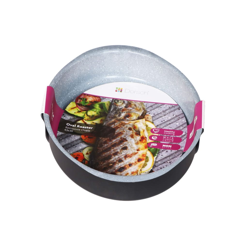 Height (cm) : 7.3 Length : 42.5 Diameter (cm) : 29.5 Material : Aluminum Color : Black Thickness (mm) : 1.8 Care : Wash By Hand Lid Type : None Induction-compatible : No Heat resistant up to : 230°C On Stove Stove type : Oven Spare Parts : None Material Property : Non-Stick Coating Size Set : 1 Pcs