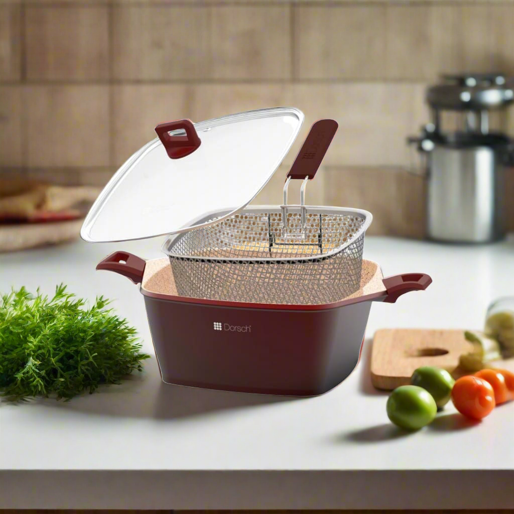 "Prepare delicious meals with ease using the Dorsch Premium Frying Pot. With its large capacity, non-stick ceramic material, and versatile compatibility, this frying pot offers exceptional durability and cooking performance for all your culinary creations."