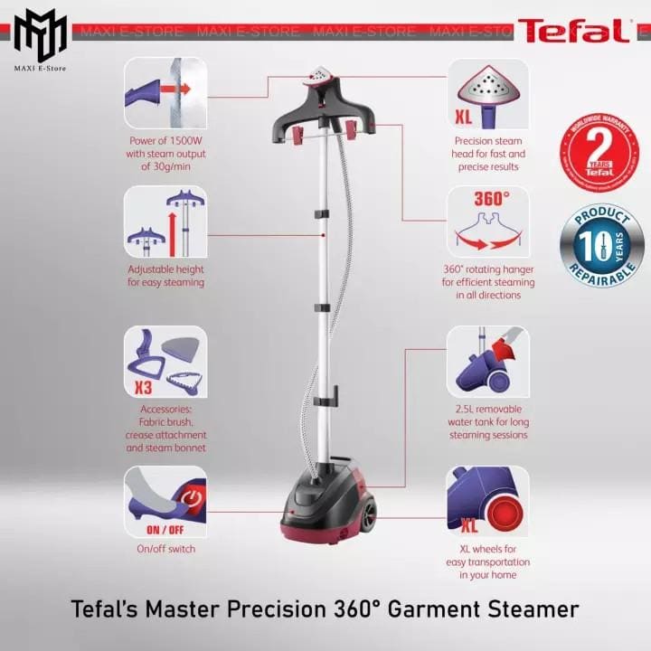 Tefal Master Precision 360 Upright Garment/Clothes Steamer, 1500 W, Black/Raspberry
