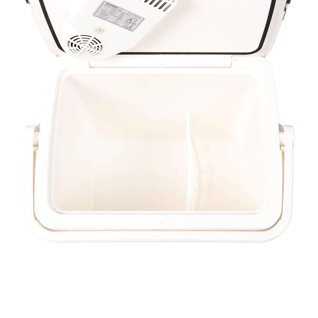 The thermo-insulated housing is made of durable plastic and stands securely on any surface. Can be operated in the car with a 12-volt plug or via the 220-240-volt plug for normal sockets. The optional separating grid and the practical cable compartment also ensure uncomplicated handling.